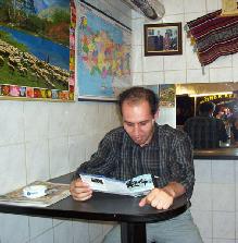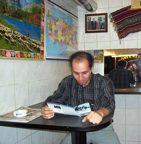 一土耳其人聚精会神地阅读传单