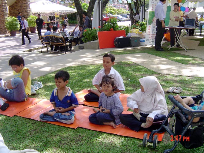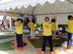 ![]() 孩子们也来学炼法轮功 | ![]() 法轮功学员演示功法 |