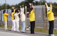 报导说,在胡锦涛车队前往尼亚加拉大瀑布的路上,学员们沿着栅栏放置了横幅,并炼习法轮功功法。在通往尼亚加拉大瀑布的高速公路上到处都是请愿的法轮功学员。