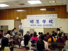 接着副校长张刚介绍了学校的教学风格以及雄厚的师资来源。与别的中文学校不同的是,明慧学校开设中国传统文化课,让孩子们在认识中国字的同时,懂得中华民族文化的内涵与承继,让几乎被现代中国人遗忘了的古老传统文化再次根植在孩子们的血脉中。明慧学校培养的孩子们将是懂得仁、义、礼、智、信的好孩子。