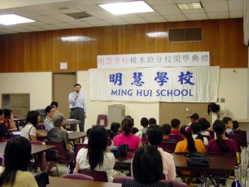在自助餐室,各位家长同学欢聚一堂。举行了开学典礼。校长梁同宣先致词,感谢各位老师家长同学们的工作和支持。梁校长阐述了明慧学校的办学宗旨,那就是培育德才兼备、造福社会的优秀人才。