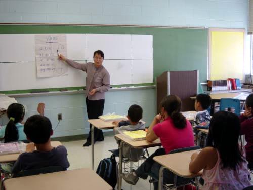 教二年级的潘老师,有30多年的丰富的教幼儿园和中小学的经验。她很谢谢明慧学校给她一个重新拿起粉笔站在学生面前的机会。有着家长们的支持,她很有信心将孩子们教好。