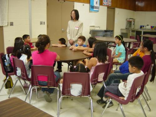 讲授传统文化课的荣老师现在美国小学里任教。她说,她讲文化课的授课形式与别人有一些不同。她是用讲故事的方式教学,寓教于乐。并且大小孩子一起上课,让他们互相学习,开启智慧。她注重与学生的互动,鼓励学生参与。