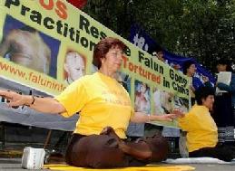 法轮功学员继续在胡锦涛访加期间进行和平请愿(图)