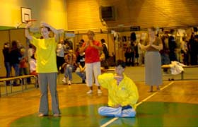场馆内祥和的大法音乐与大法弟子们精彩的功法演示感动了在场的观众。表演完毕后,人们报以热烈的掌声和欢呼声答谢大法弟子们。在法轮功的摊位上,学员们将功法演示图片、和各类英、法文真象资料,摆在桌上以方便人们阅读和索取。很多人过来询问真象,并表示希望去当地的炼功点学功。有许多人在反迫害的征签表上签名。
