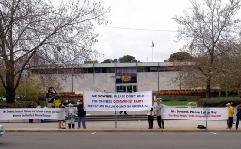 法轮功学员在堪培拉最高法院前拉开“横幅长城”