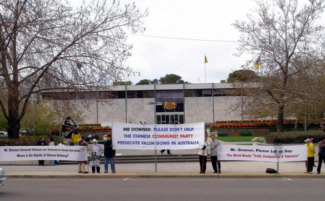 法轮功发言人Kay Rubacek介绍,常年坚持在中共堪培拉大使馆前请愿的以老年法轮功学员为主。