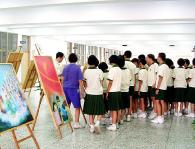 ![]() 参观者由导览解说,了解每幅作品背后的真实、感人故事 | ![]() 学生们特别喜欢小莲花,在现场学习制作 |