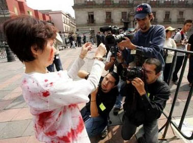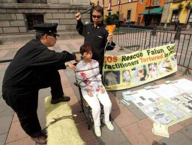 路透社图片:法轮功学员在墨西哥举办酷刑展