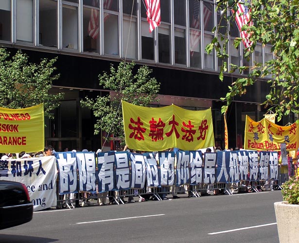 以后的两天内,法轮功学员将继续在联合国和沃道夫酒店前呼吁,要求停止迫害法轮功。