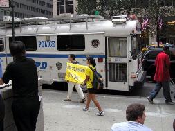 同时学员告诉警察我们既不是抗议也不是欢迎,我们就是希望胡和所有来的中国人知道法轮功真象,有个美好的未来,所以我们希望能和欢迎队伍一起。警察很惊讶的同意了这个要求。