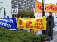 ![]() 法轮功学员在酒店外请愿 | ![]() 在酒店后门请愿 | ![]() 法轮功学员酒店外通宵发正念 |