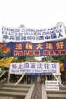 16日下午5时左右,几位法轮功学员在胡下榻的一侧,打出“法办江、罗、刘、周”的大横幅。不久,两个手拿小红旗的年轻人冲过来,横蛮的把横幅从学员手中强扯过去,并扔在地上,还出口骂学员。一位当地居民刚好路过,见状,就指着他们说:这是加拿大,不许你们在此行恶。那两个小年轻顿时愣了一下,但还欲再次上前从学员手中抢横幅。那位加拿大女士上前不停的呵斥他们:“不许行恶,不许行恶!”