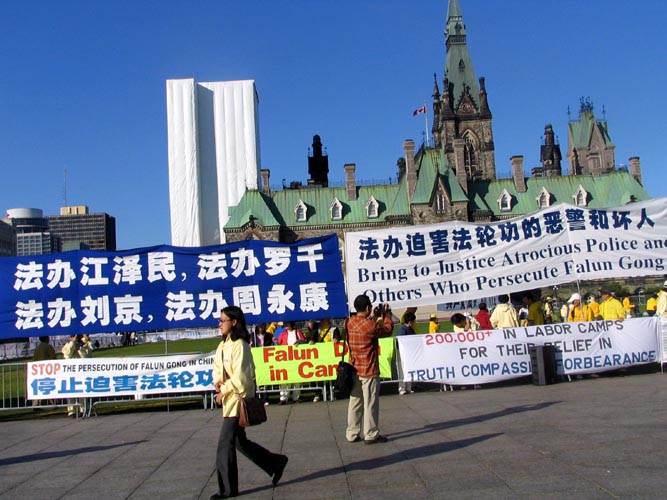 9月9日,加拿大总理马田在渥太华国会会见胡锦涛时,明确提出了法轮功问题。据法轮功学员李迅回忆,8日晚,反对党主席斯迪文-哈普(Stephen Harper)参加总督府聚会前,没有直接进入,而是特意绕到学员请愿的现场,同和平请愿的法轮功学员握手交谈,并鼓励法轮功学员再接再厉。9日的新闻发布会上,加拿大媒体记者向胡锦涛提出的第一个问题就是包括法轮功受迫害在内的中国人权的问题。
