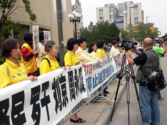 在胡锦涛到访之前,法轮功学员在渥太华举行4次新闻发布会,还在国会山举行了两次大规模的集会,一次是“呼吁禁止参与迫害的人权罪犯薄熙来進入加拿大”,另一次是“呼吁总理向胡锦涛提出法轮功问题”;国会议员大卫-乔高、艾德-布劳德本特和斯考特-瑞德到场支持。多伦多及温哥华的学员也紧锣密鼓的展开各种讲真象活动。经过全国法轮大法弟子的共同努力,近十万名加拿大人联名签署信件,呼吁总理在同胡锦涛会晤时,提出停止迫害法轮功。