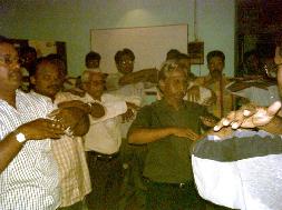 一位女士6、7年前就买了法轮功的书,也读了,但一直在等人教她炼功;一位男士从库得拉市(Cuddalore)专程赶来学功,从那儿到晨奈至少要坐四个半小时的火车;有一个人听说法轮功免费教功,主动提供他的办公室,用来办第一个学习班。