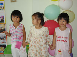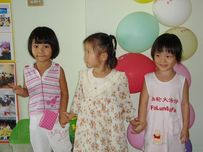 明慧老师由一些学有专长的法轮大法弟子担任,他们当场作画,吹箫,讲故事,并教小朋友学会讲法轮功真象。小朋友们都非常喜欢这个新园地,快乐的开始了在明慧学校的第一天。修炼法轮功的老师们,希望小朋友们在心中埋下真、善、忍的种子,在日常生活中成为好孩子和精进的大法小弟子。