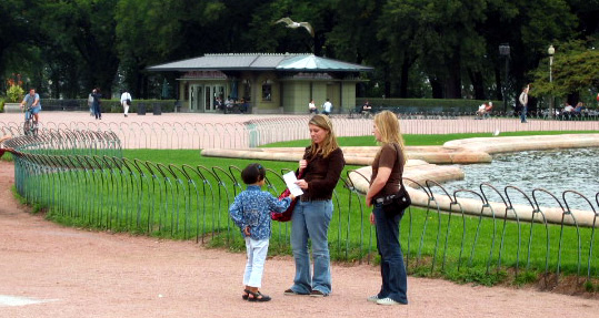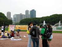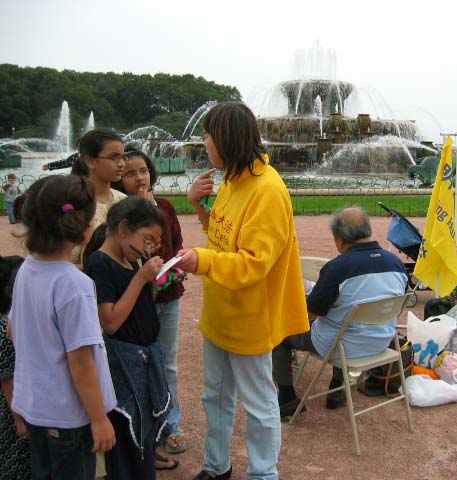 芝加哥明慧学校和当地的法轮功学员们一起配合,已经在白金汉大喷泉前组织过两次活动,让大批的来自世界各地的民众,特别是来自中国大陆的观光者了解真象,营救在中国受迫害的法轮功学员们的孩子们。白金汉大喷泉在这里也见证了感人的一幕幕: