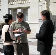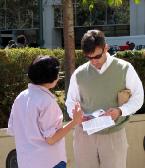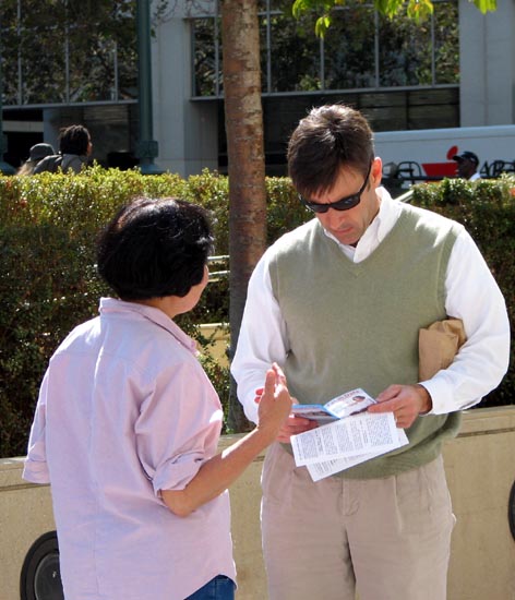 这是夏德仁第二次来加州。法轮功学员段女士见到他后,把装有美国联邦法庭北加州法庭关于夏对迫害法轮功负有责任的判决书,以及在2002年2月法轮功学员起诉夏的相关资料的大信封交给夏。夏及其随从均拒绝接受,把信封推过一旁。
