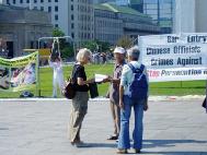 据法轮功学员介绍,加拿大人看到酷刑演示后,许多人都难以相信这场对善良人的迫害如此残酷。许多人发自肺腑、甚至含着眼泪对法轮功学员说,加拿大政府应该立刻采取行动,这样的迫害一天都不应该发生。加拿大面对酷刑演示都受到极大的震撼。他们认为对善良人的迫害是不应该发生的。