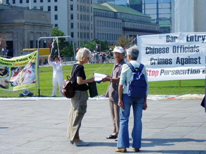 在近半个月的时间里,来自加拿大东部城市多伦多、蒙特利尔、渥太华的法轮功学员不断出现在加拿大国会山,外交部、移民部等地,以反酷刑展、征签等形式向加拿大社会讲述法轮功在中国受迫害的情况。与此同时,在多伦多、蒙特利尔和温哥华等加拿大主要城市的街头也能看到通过各种形式讲真象的法轮功学员。