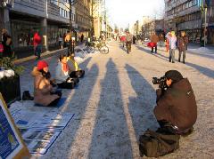 有两个女孩,看到迫害照片后非常吃惊的问,这些都是什么人啊?学员告诉她们,这是法轮功学员在中国被警察残酷迫害的真实情况,两个女孩说,怎么能发生这样的事。当仔细看了所有展板明白后,又问道,我们还没到18岁,可以签名吗?学员说,当然可以。她们立即签了名声援制止迫害。