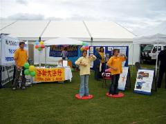 2005年12月13日,我们一部份法轮功学员为奥尔巴尼展(Albany Show)带来了新气象。2万奥尔巴尼居民了解了法轮大法。大法的美好通过大法美术作品和孩子们的功法演示得以展现,1000多个气球分发给了成群的孩子们。
