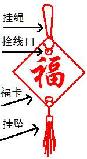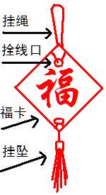4、每对挂坠和挂绳的颜色要一致,和所配的福卡中心色调要一致,这样比较美观。(例如:打坐小娃娃的福卡,突出的中心是肉色的小娃娃,用粉色挂绳和挂坠搭配较为美观:红色福字的福卡,突出的中心是红色福字,用红色搭配较为美观)若中心色调是冷色调(冷色调让人感觉冷)配红色较为喜庆、美观。