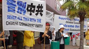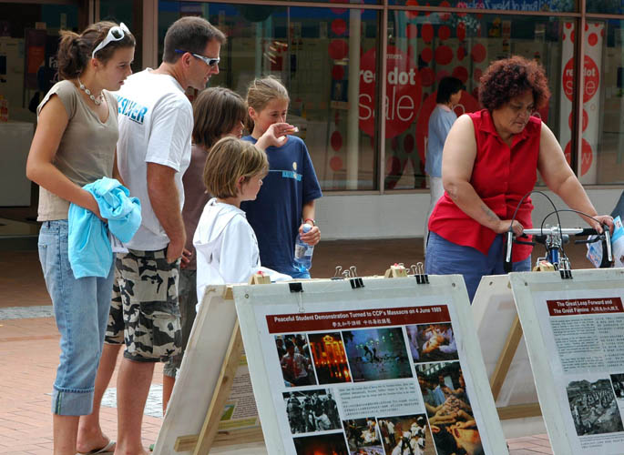 法轮功学员在活动中也打出了声援7百万人退党的横幅。随着大纪元时报社论《九评共产党》的传播,越来越多的人认清了中共的邪恶本质,也因此看清了中共对法轮功的这场迫害的残暴和邪恶。迄今已经有7百多万人在网上声明退出中共邪党。