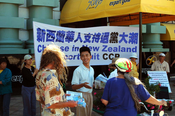 学员们向民众揭露中共邪党本质,讲述中共迫害法轮功的原因