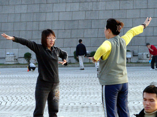 一位拿着相机一直拍照的以色列年轻人说,他没听过法轮功,但是看到这么祥和的功法,他非常有兴趣上网去了解更多的讯息。另一位身材魁梧来自韩国的中国人很疑惑的问,全世界真有这么多人炼法轮功吗?炼了又有什么好处?学员告诉他,全世界不分种族肤色已有七、八十个国家,一亿多的人在修炼,炼法轮功可以让自己变成一个身体健康的好人,他念着书签上写的“真善忍”三个字,点头微笑,收下了真相材料。
