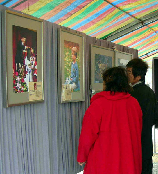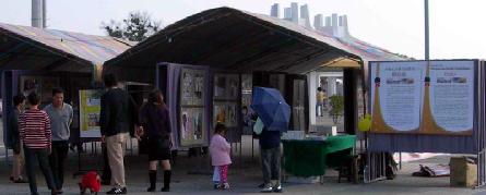 首日展出,不约而同来了一些当地的小朋友,他们听完学员亲切的介绍后,明白了做人要诚实、善良、坚忍的道理,随即决定要帮忙做好事,他们穿梭在展览场周围,协助捡起被少数游客遗落在地上的真相传单和简介。另一位约摸6、7岁大的小朋友来到服务台前,指着莲花书签说他看到了美丽的菩萨,工作人员依“法轮大法好”的字体逐字教他诵读,他不太识字,反复数次终于学会,便高兴的答应:以后要做善良的小孩,时常诵念“法轮大法好”。隔日,他又邀了姐姐到展览场帮忙派发大法简介、洪法书签。