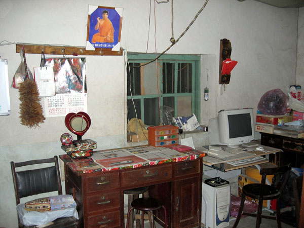 大火过后,西北厢房安然无事。这里是大姐平日学法的场所,墙壁挂着师父的法像,柜子里也放置着大法书籍,室内还有讲真相用的电脑。