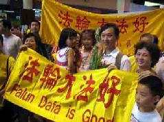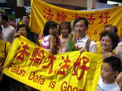 ![]() 泰国法轮功学员在机场为黄国华父女送行 |
