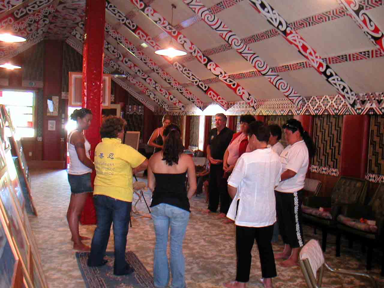 这也是学员们第一次直接向新西兰的本土居民─毛利人介绍法轮功,大约有60人前来庆祝。他们聆听了关于法轮功的介绍及大法弟子在中国无辜遭受的迫害。许多人学炼了功法。除了对法轮功在中国遭受的迫害感到悲伤外,许多人也表达了他们对法轮大法的渴望。