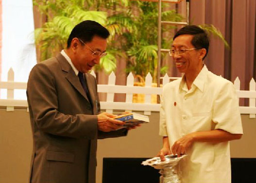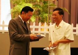 法轮功学员向兰实大学校长Dr. Arthit Urairatana赠送
