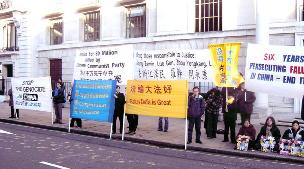 自从2002年6月5日,英国法轮功学员在中使馆对面开始每天24小时和平抗议,制止中共迫害法轮功。高郁冬女士说:“我们在大使馆的抗议已经3年半多了,从我个人经历来说,我还从来没有遇到过这种暴力袭击事件。”