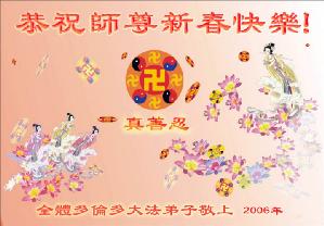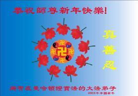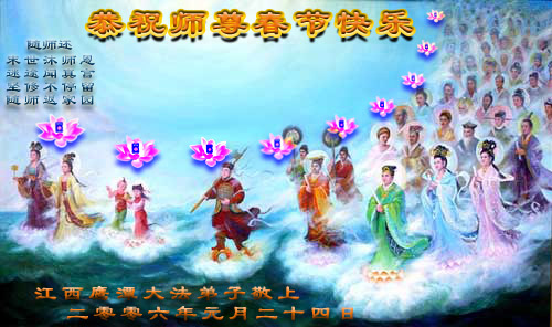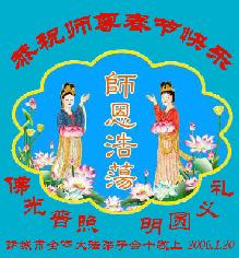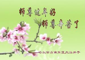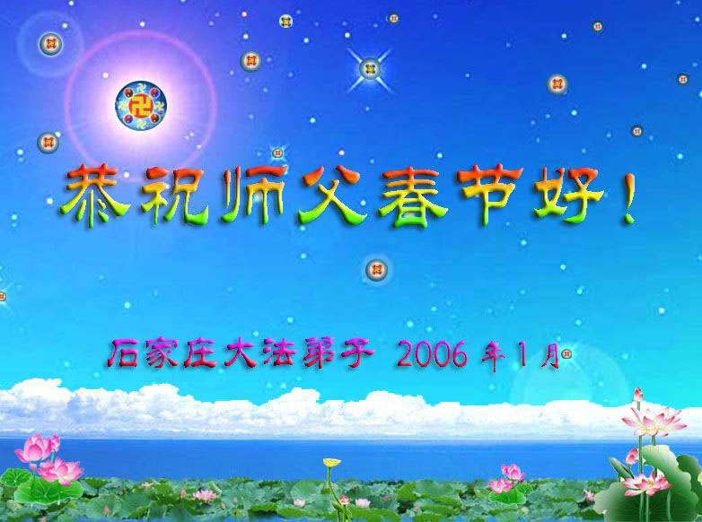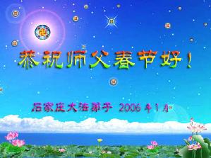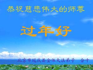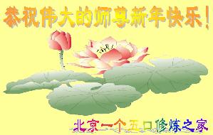 值此新春佳节之际,我们全体北京清河地区和北太平庄地区的大法弟子向慈悲、伟大的师尊致以节日的祝贺,祝师父新年快乐!