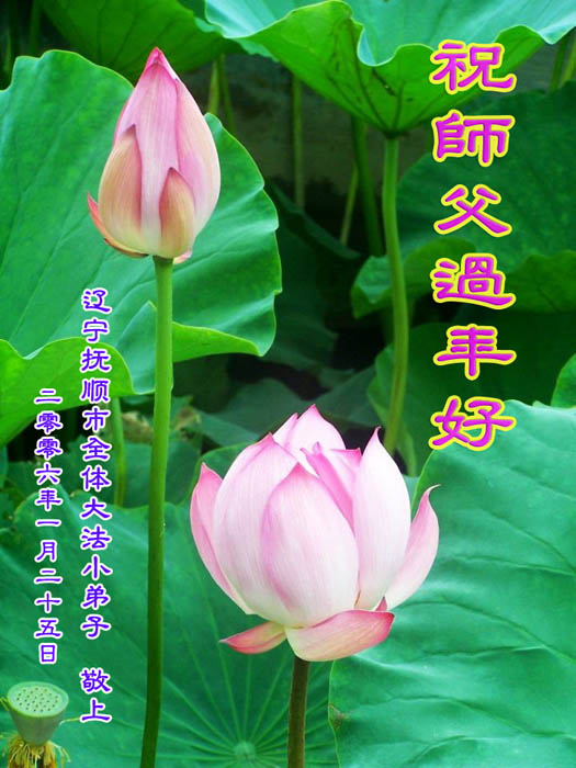我代表抚顺地区全体大法弟子和大法小弟子向慈悲伟大的师尊祝福,祝师尊新年快乐、万事顺意。