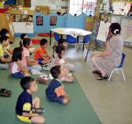 在小班的学法组中,发生了许多感人的事情,有四位4岁左右的孩子平时很难坐下来静静学习,今天居然静静的坐着学法。当教师说现在可以休息了,一位8岁的小弟子说:我还要学法。教师又教他读了三首《洪吟》中的诗,他才离开。最后剩下一位孩子,仍然坐着不走,这孩子刚满4岁,平时从不开口说话,教师看着他说:你跟我读《洪吟》好吗?他只是看了看她,当教师领读“正神”这首诗时,他居然开口了。开始是一个字、一个字的跟读,后来到2个字跟读,一共读了五首诗,明慧学校的教师们都很激动,把这可喜的消息传遍每个在场的大法弟子:“他说话了,他会读《洪吟》了……” “祝福你,在新的一年中迈开了可喜的一步。”