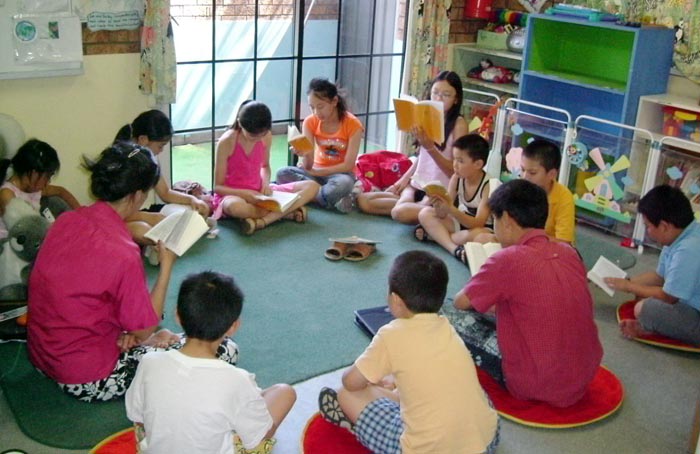 三次发正念,再加上一个小时打坐后,孩子们分成大、中、小班学法。读《转法轮》、《洪吟》、《洪吟(二)》。有的小弟子平时在家长鼓励带动下学法多,通背过《洪吟》,所以在今天的集体大学法中,当场能背诵不少诗章,令其他小朋友敬佩,给予他们不少掌声,更增强了他们学法的信心。其他小弟子也表示要回去多学法,追上来。
