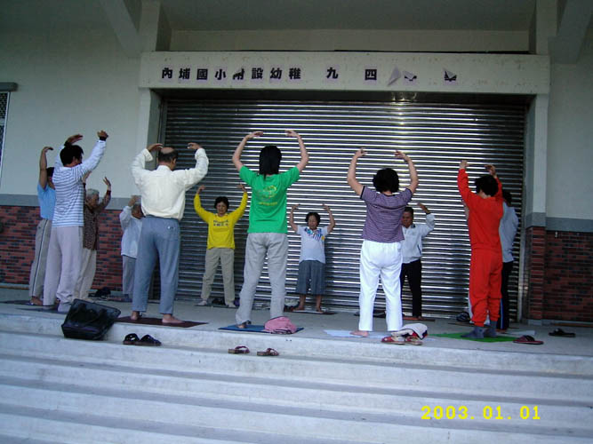 炼功点位在屏东县内埔乡内埔国小体育馆的走廊上,成立于一九九八年,迄今已有八年了,这期间陆陆续续的有很多人来学炼功法。