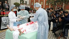 ![]() 台湾立法院外的行动剧,谴责中共活摘器官暴行 |