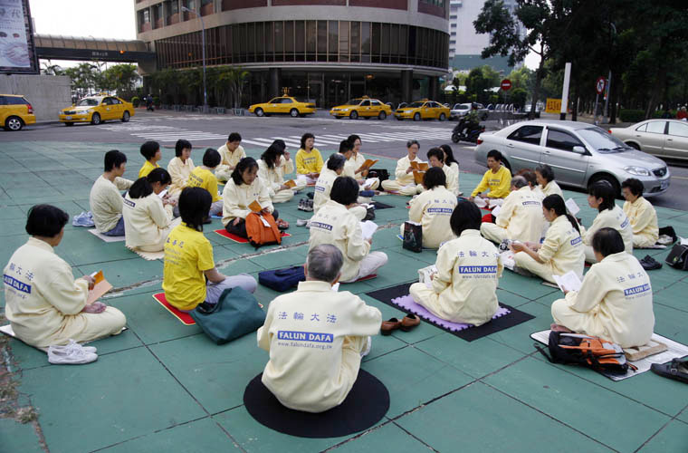 二零零六年七月开始,我们的炼功点从市民广场移到全国饭店前的绿园道。经过交流,我们尽量穿着印有“法轮大法”的黄色上衣,希望中国大陆游客拍照回国后,能使受中共谎言蒙蔽的中国人看到台湾有许多法轮大法的修炼者。每逢星期天,其它炼功点的学员会一起参与集体炼功,汇集更强大的正念之场。