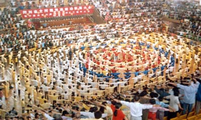 一九九八年在广州天河体育馆召开的心得交流会,有上万名法轮功学员参加。