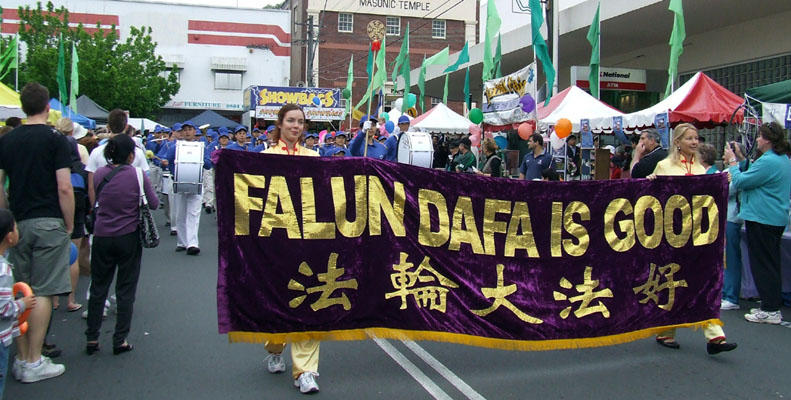 在法轮功游行队伍经过主街时,当地市议会主持人向观众介绍道,“法轮大法也叫法轮功,是一种气功锻炼,并教导人们要信仰真善忍。法轮功有五套功法,动作都是缓慢的,看起来与太极拳和瑜咖相似。炼法轮功会令人感到轻松愉快,使人精力充沛,而且易学。在伊斯特伍公园就有法轮功的炼功点……”