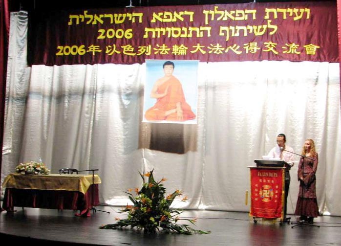 展示以色列大法弟子讲真相和揭露发生在中国的迫害影片的播放拉开了法会的序幕,之后,十八名大法弟子在法会上宣读了他们的修炼体会。法会结束时大法弟子菲里德曼演唱了自己作词作曲的歌《清醒吧!》,在这之后放映了影片《永恒的史诗》。法会结束后大家久久不愿散去,继续進行交流。