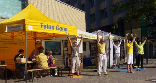 ![]() 法轮功学员在文化节上设置展位,演示功法,讲真相 |