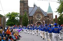 【明慧网二零零六年十月七日】第五十五届尼尔加拉葡萄酒节(Niagara Wine Festival)于二零零六年九月三十日在圣·卡瑟琳市(St. Catharines)举行盛大游行。首次参加游行的多伦多法轮功天国乐团受到沿途观众的热烈欢迎。