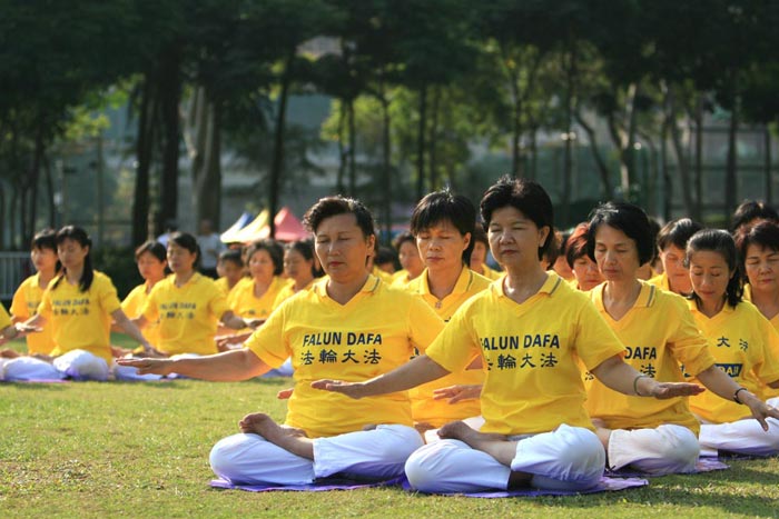 学员在集体炼功。